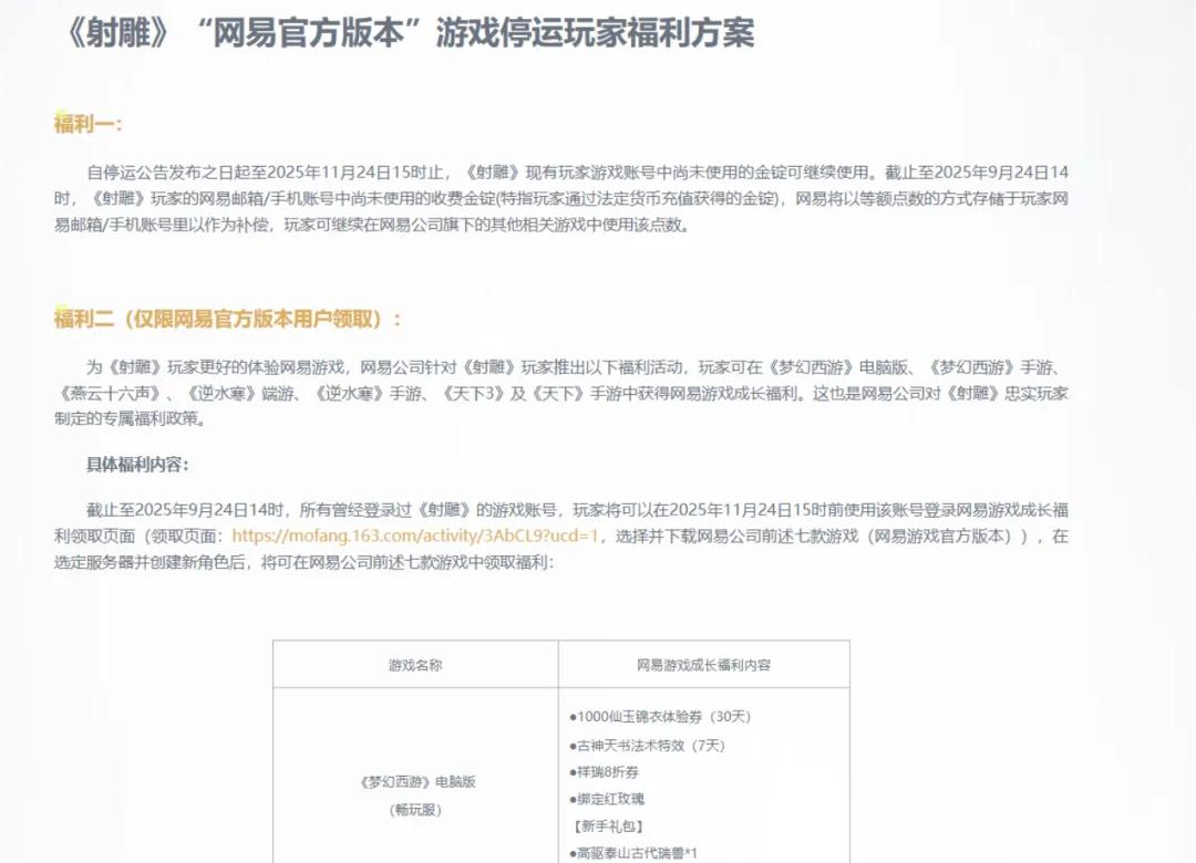 近日,随着游戏《射雕》宣布正式的停运时间,今年上半年,就有超过17款知名游戏突然宣布停运,最短的运营周期只有半年。在媒体都在报道厂商,分析他们为何停运,游戏在停运前都经历了什么“困难”时,今天速途网想要聊一聊,停运后,游戏玩家都获得了什么补偿?