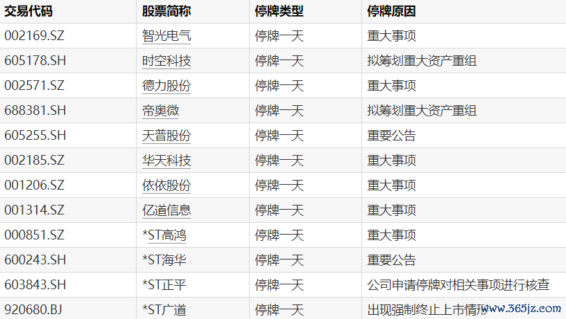 A股停牌提示:9股今日停牌A股停牌提示:9股今日停牌